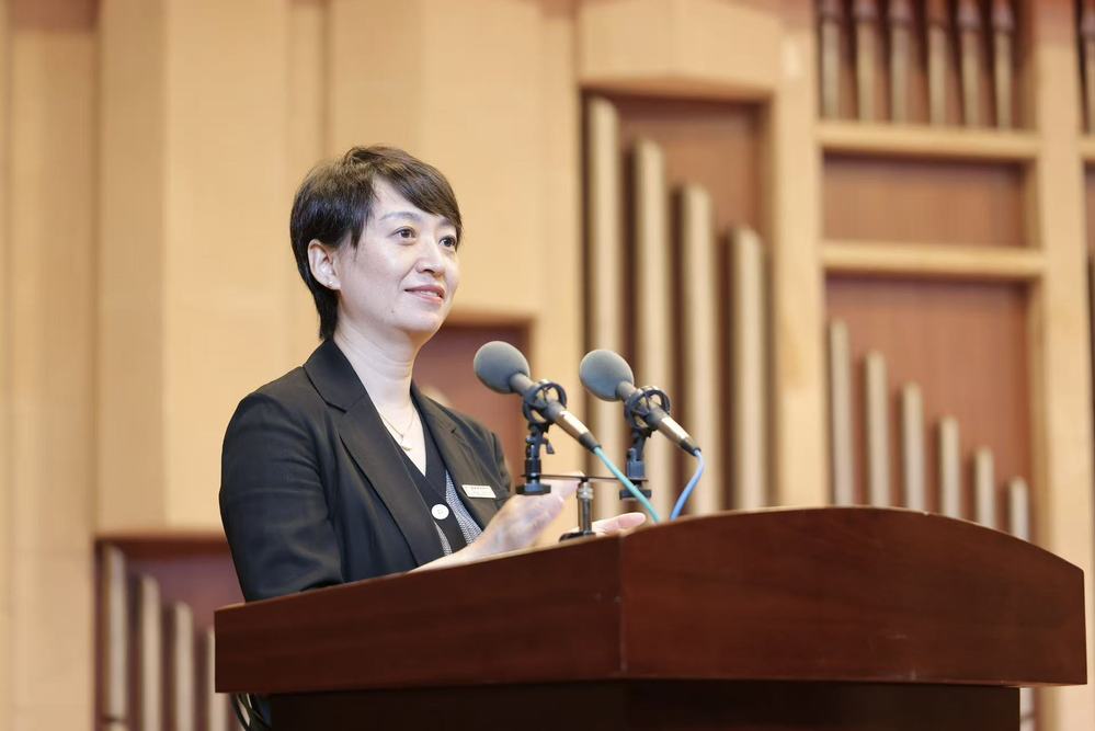 2025级新生代表胡嘉芮在发言中表示,研究生阶段是学术探索与身份转变的新起点,需要既有沉潜的定力,也要有创新的锐气。她号召同学们牢记校训“明德教化,乐音至善”,以青春和奋斗勇立潮头,努力成长为有理想、有本领、有担当的新时代青年。